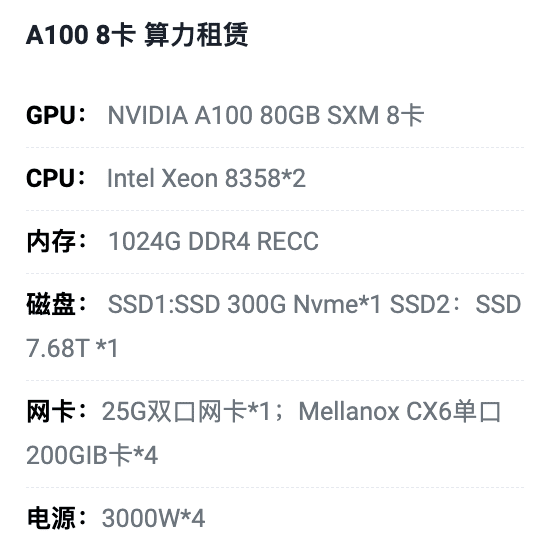 保定A100八卡算力租用价格