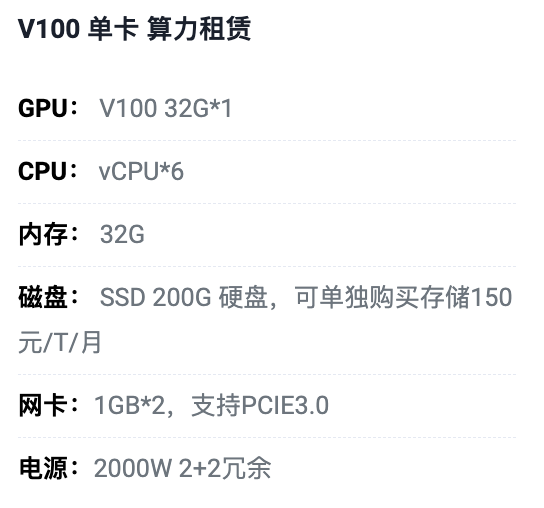 保定V100单卡算力租用价格